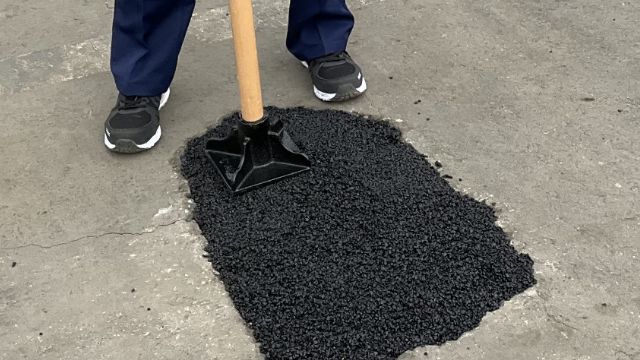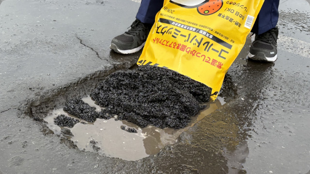 手間いらずの「高耐久アスファルト補修材」です。