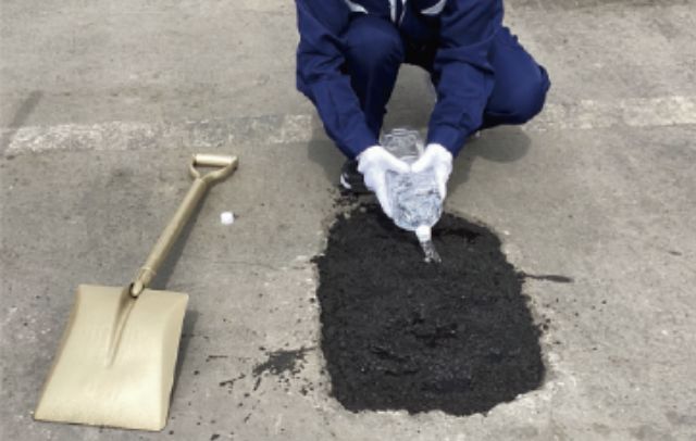 パッケージは手で簡単に開けられます。本品を使用直前に開封し、施工箇所に材料をスコップなどを用いて広げます。