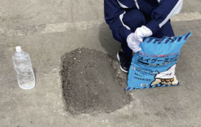 最後に再度散水して施工完了です。直ちに交通開放が可能です。