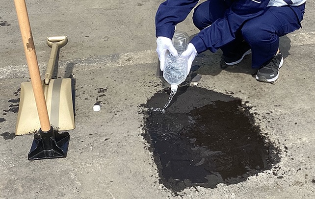 パッケージは手で簡単に開けられます。本品を使用直前に開封し、施工箇所に材料をスコップなどを用いて広げます。